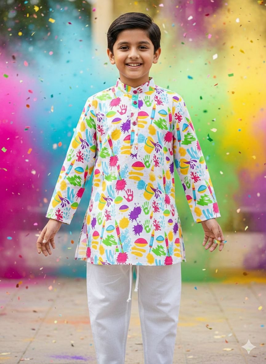 Comfortable and breezy 100% cotton fabric Kurta pajama set. Perfect outfit to celebrate Holi Festival.