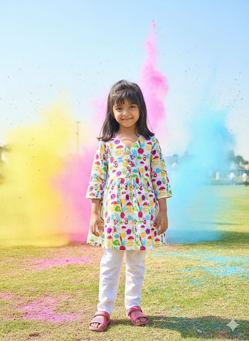 Comfortable and breezy 100% cotton fabric Kurta pajama set. Perfect outfit to celebrate Holi Festival.