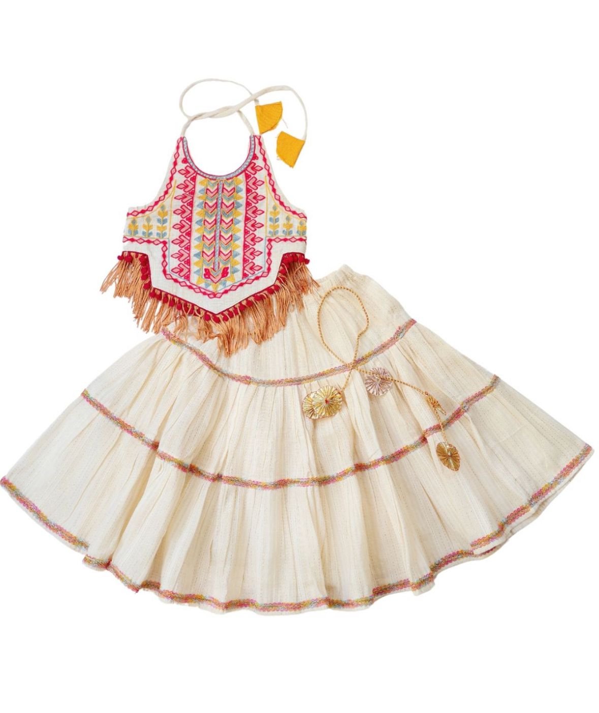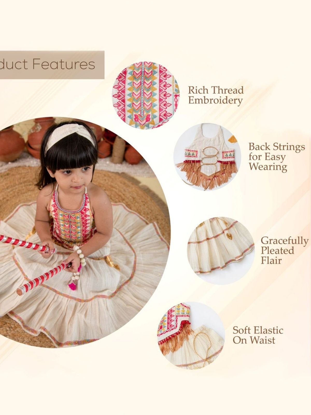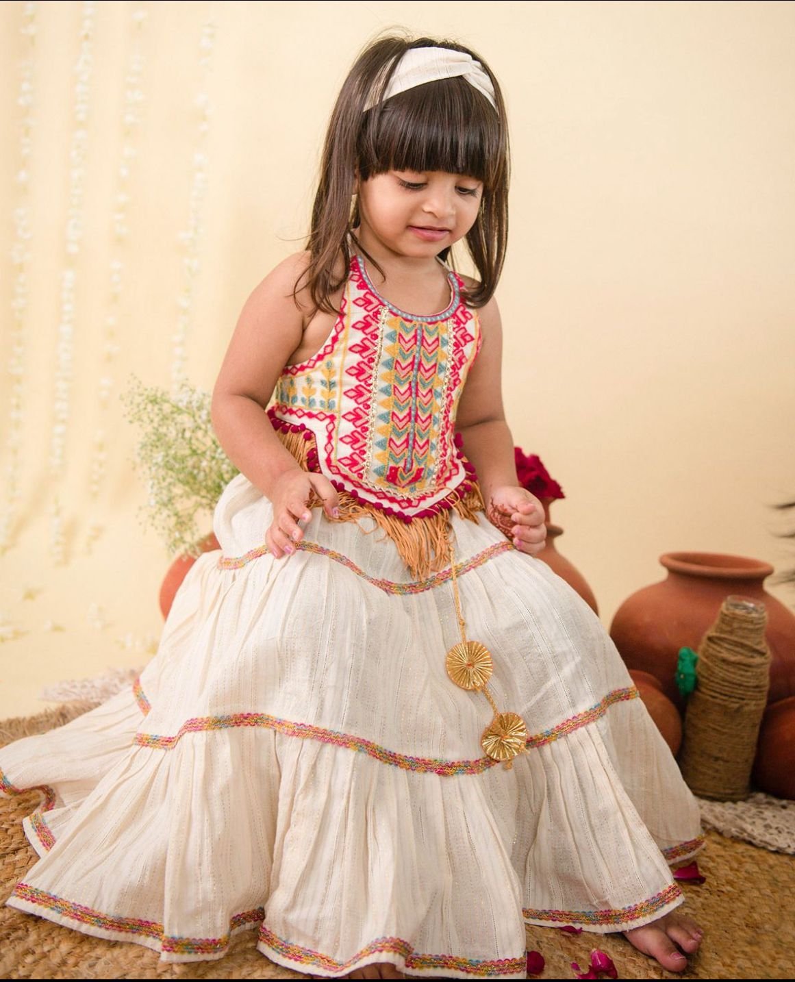 Features: 1. 100% Natural Cotton: Gentle on baby’s skin. 2. Intelligent Design: Prioritizes baby’s comfort. 3. Safety Assured: No pricking or irritating elements. 4.Elegant & Comfy: Perfect for festive occasions. 5. 3-5 meters flair as sizes increase.