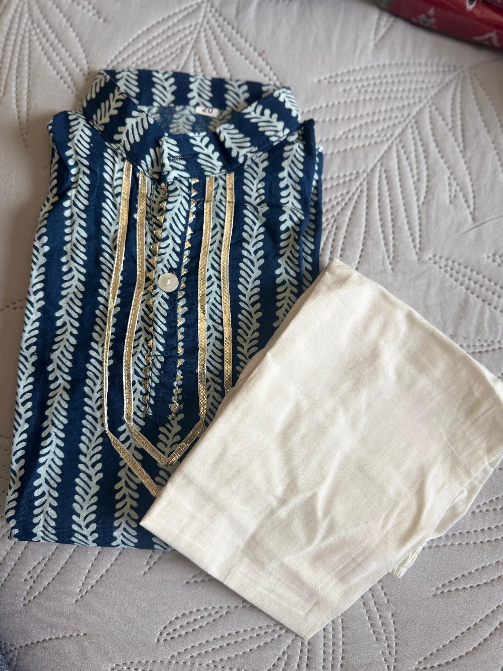 Soft rayon leheriya printed mandarin collar, full sleeves Kurta with white pajama