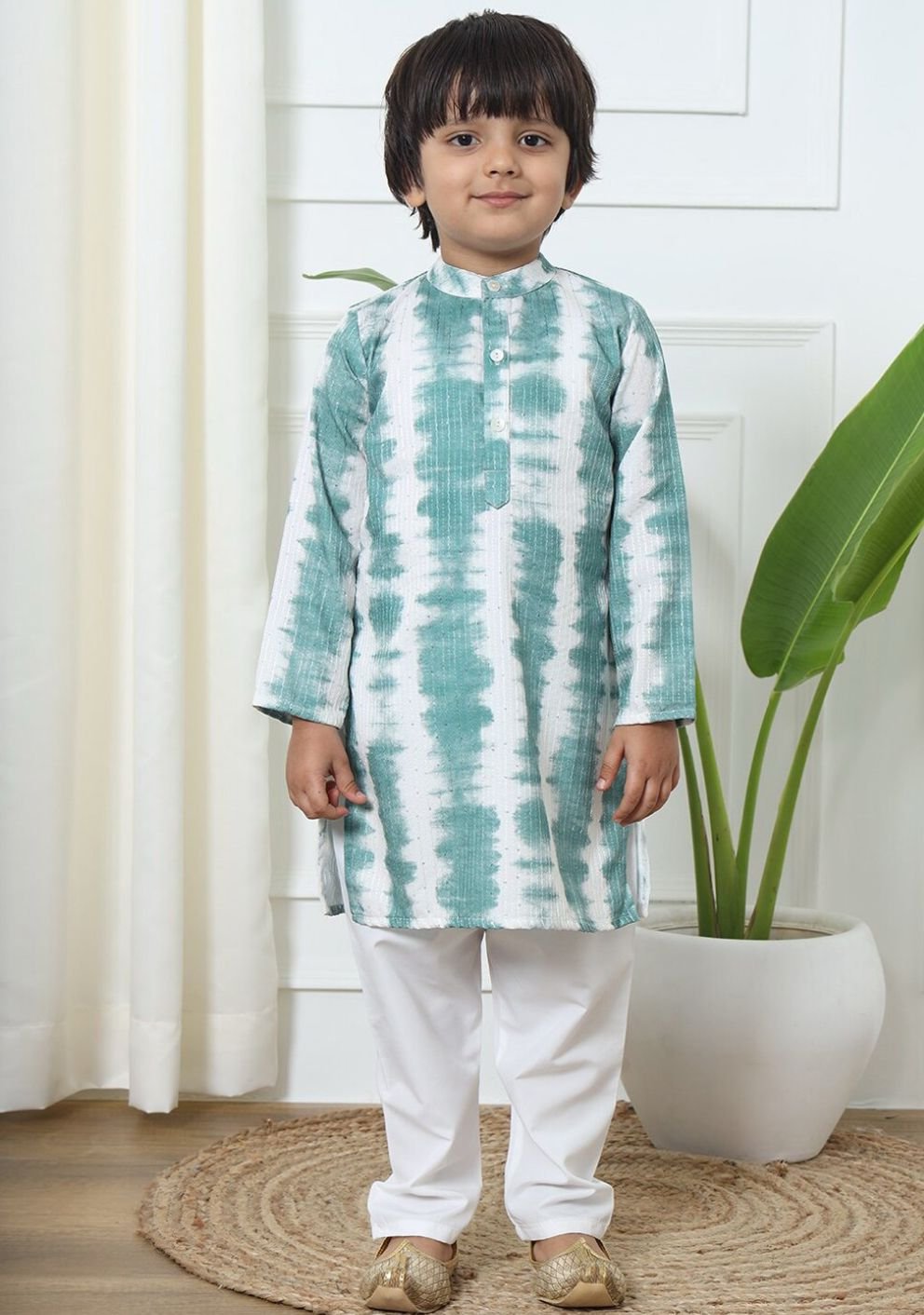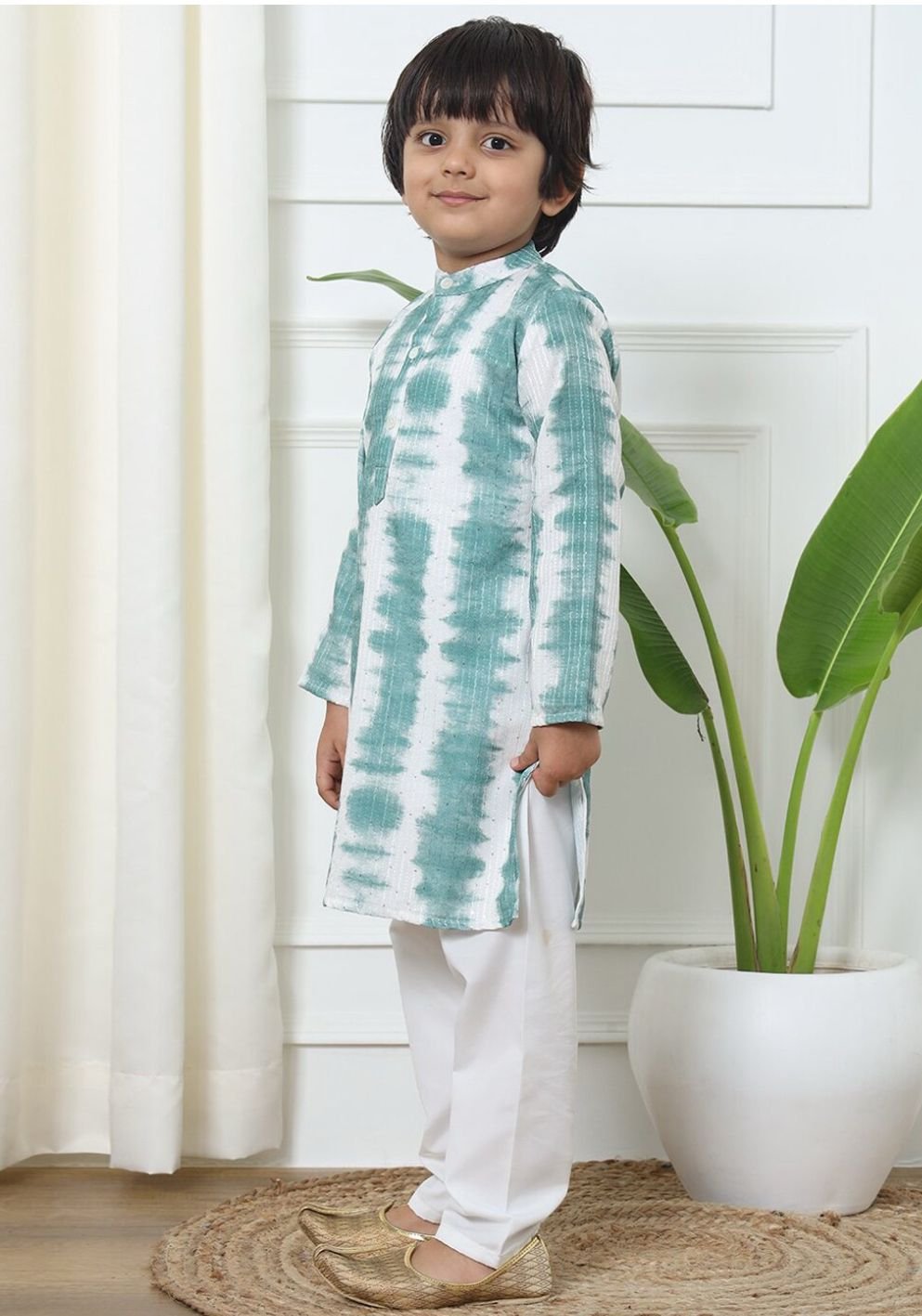 Be the first to review “Teal and white Tie and dyed sequined kurta pajama set”