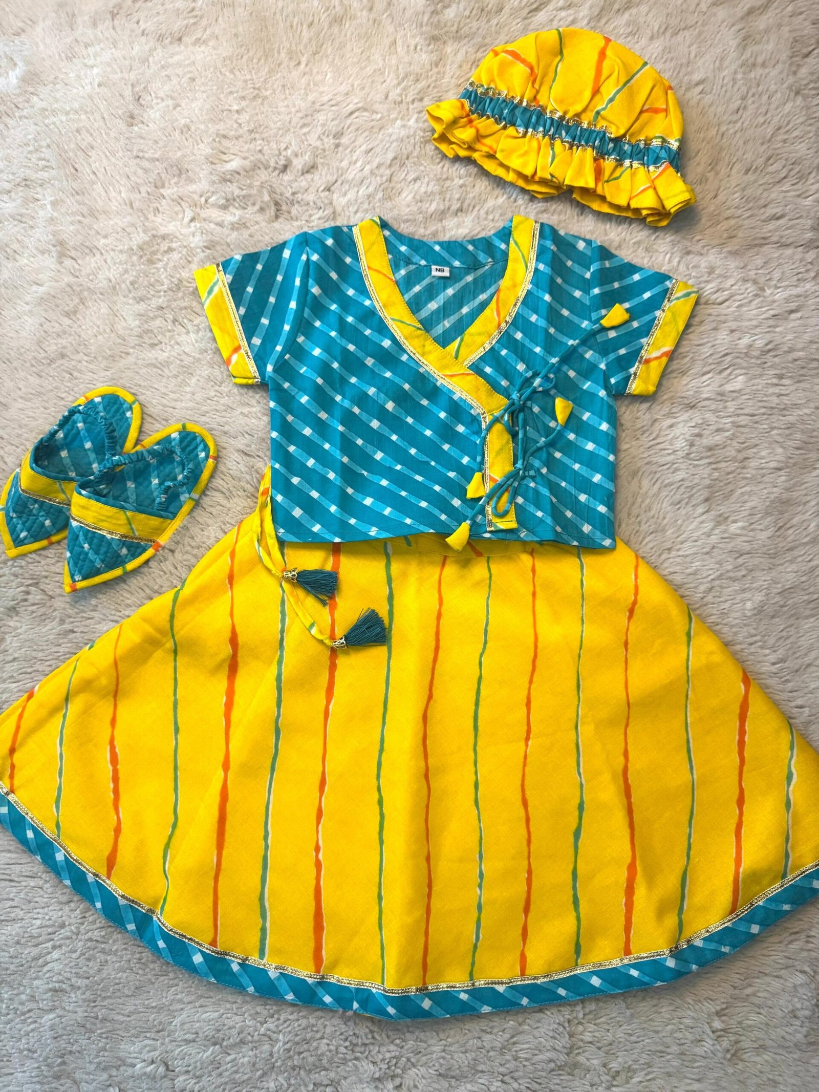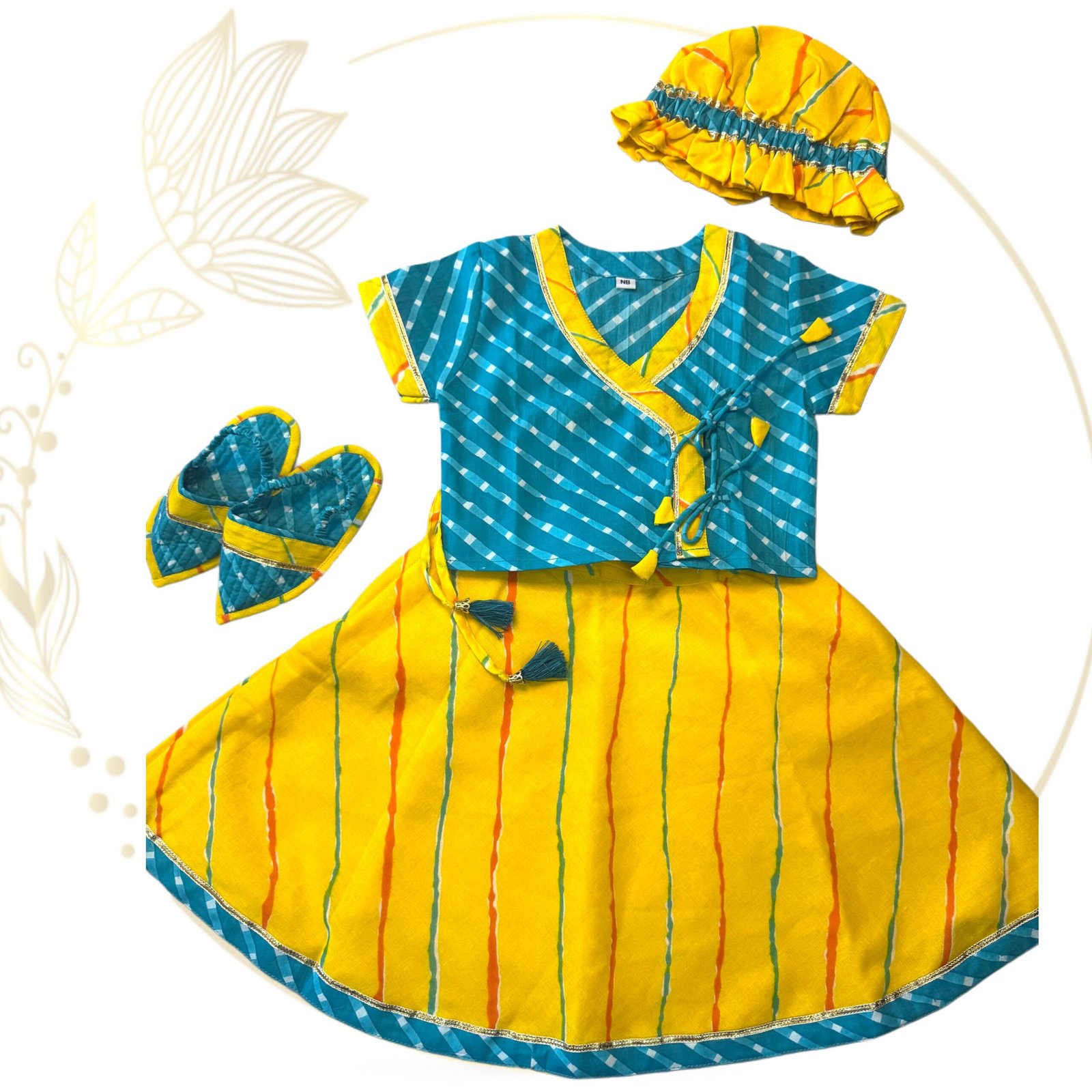 Yellow and blue leheriya Baby Girl Jaamna sets