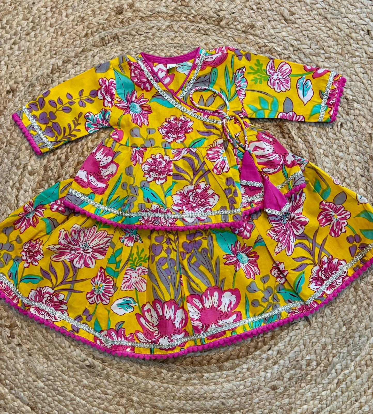 Specifications: Soft cotton fabric, gentle on skin for lil girls, Kurti set coming as a pair with skirt.